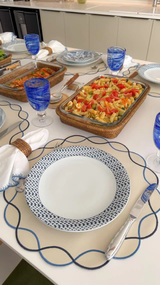 Lugar Americano Off White c/ Azul Colors Premium