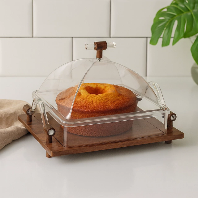 A Bandeja com Cúpula Concept Carolla Home é perfeita para apresentar bolos, pães e quitutes com elegância e proteção.