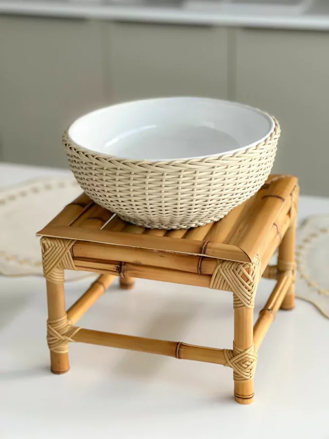 A Banqueta de Bambu é uma peça artesanal que traz um toque rústico e elegante ao seu ambiente. Feita à mão, cada banqueta é única e pode apresentar variações nas fibras do bambu, tornando-a especial.