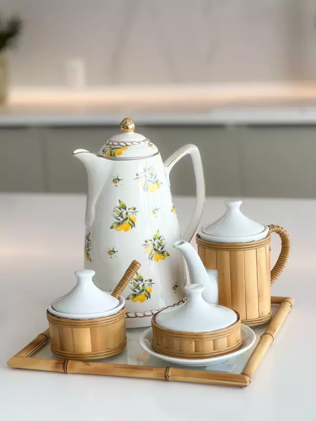 Bule de Porcelana e Bambu Natural
