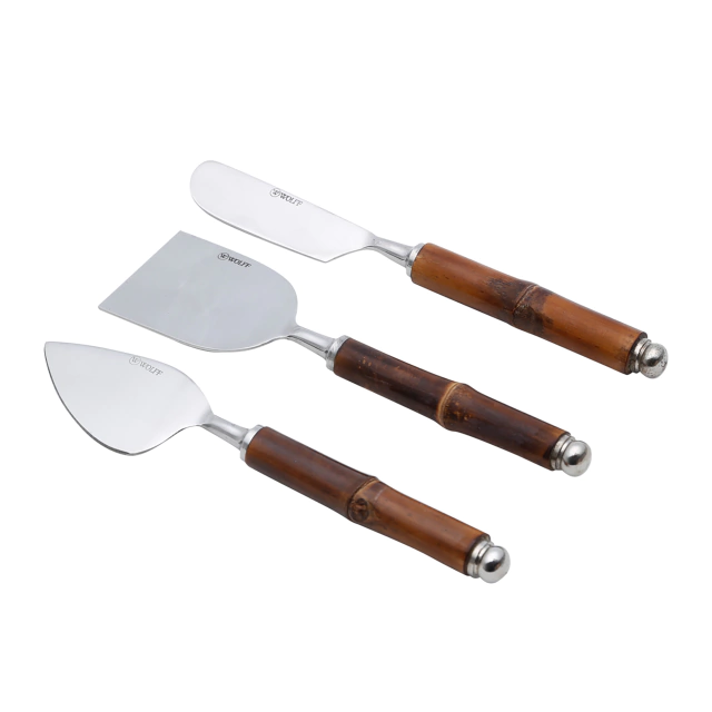 Conjunto 3 Peças para Queijo em Aço Inox com Cabo de Bambu