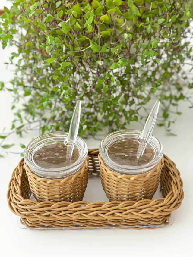 Kit Cesta com 2 Potes e Colher de Acrílico
